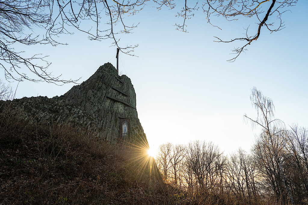 Der beeindruckende Basaltkegel, der sich in ca. 20 Meter Höhe erhebt und als nationaler Geotop ausgezeichnet wurde, übt eine magische Anziehung auf seine Besucher aus.