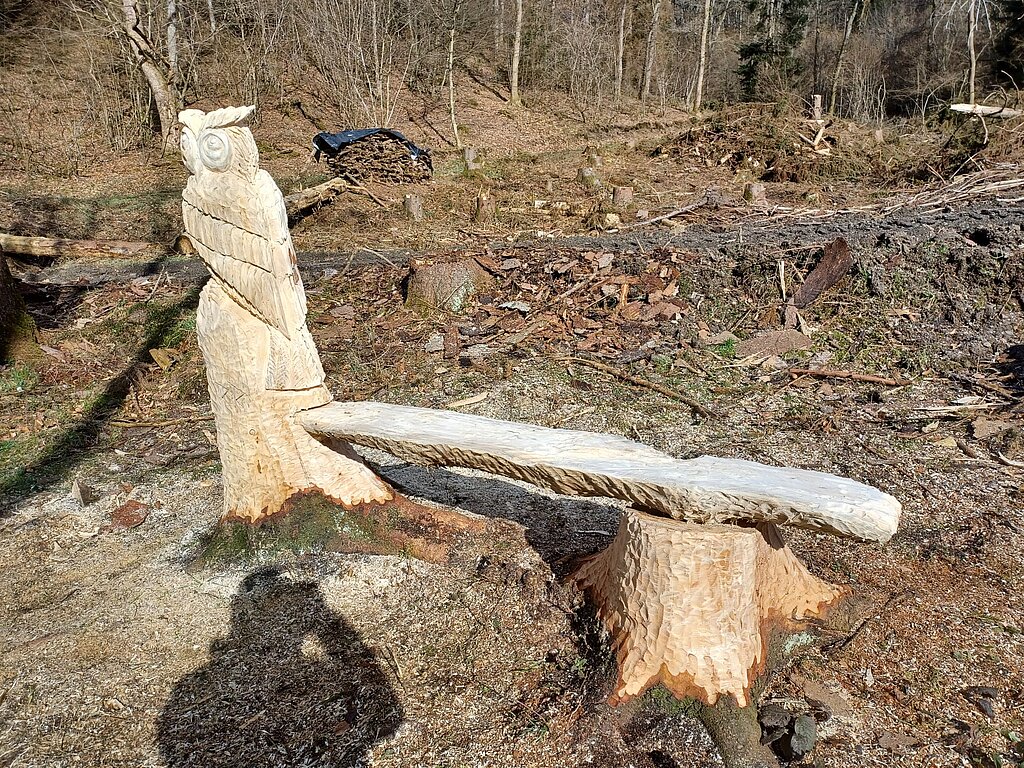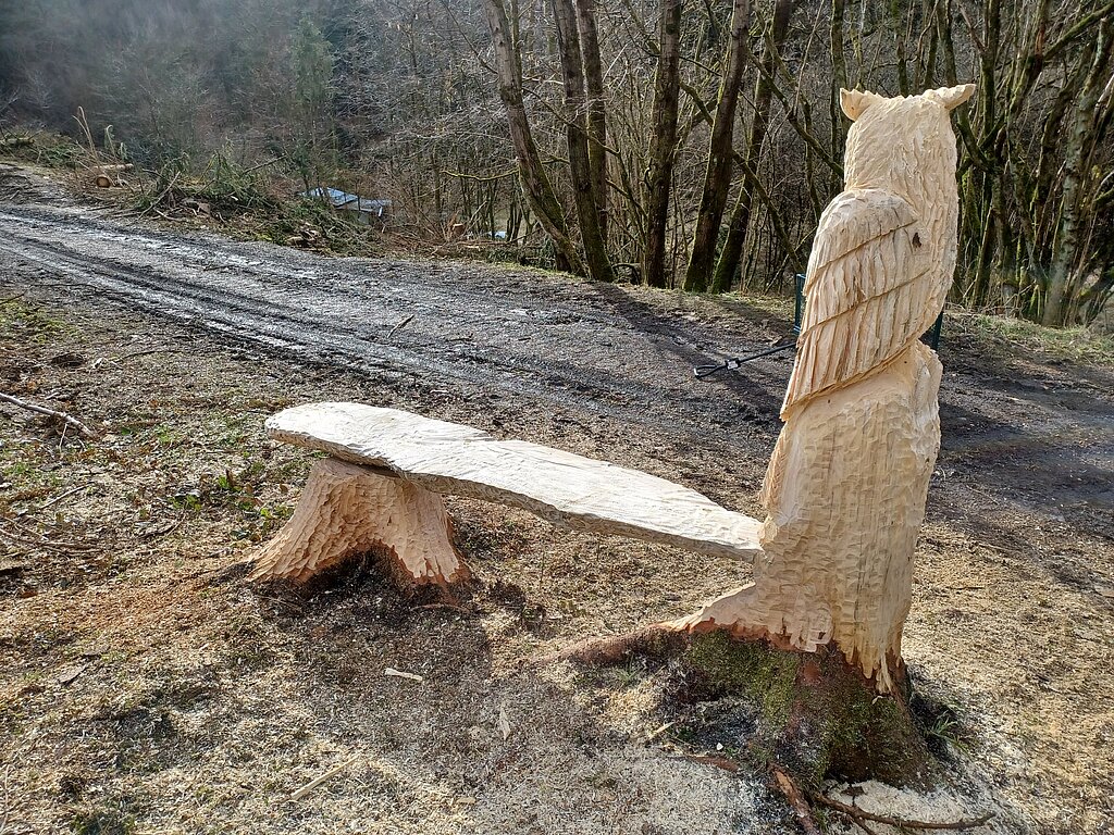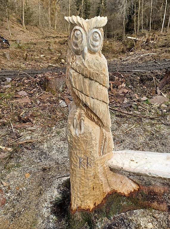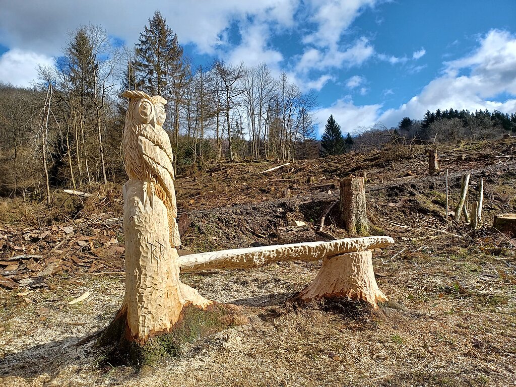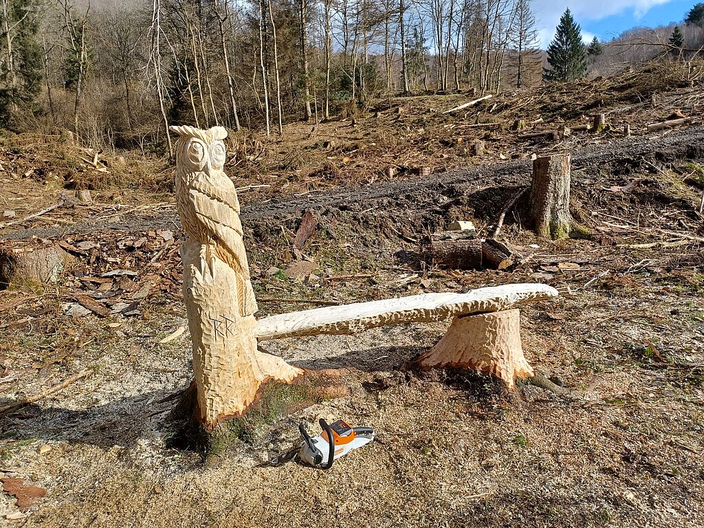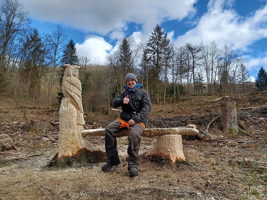 Robin Rosenthal schnitzt am Eichhörnchenweg