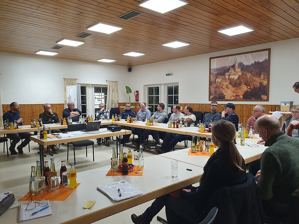 „Die gesetzlichen Regulierungen für die Landwirte führen oftmals zu großen Hürden bis hin zur Verhinderung von fachlich sinnvollenMit dem Workshop „Landwirtschaft“ startete die nächste Phase auf dem Weg zur Erstellung eines Klimafolgenanpassungskonzeptes für die Verbandsgemeinde Kirchen (Sieg). (Foto: Lena Wagner) Arbeits- und Anbauweisen“, erklärte Tim Kraft, Fachbereichsleiter und Wirtschaftsförderer der Verbandsgemeinde Kirchen. Gleichzeitig würden die Verwaltungen teilweise mit der Beschaffung von Daten kämpfen, die eine konkrete Ansprache der Betroffenen und eine zielgerichtete Auswertung erst ermöglichen. „Nur wenn wir wissen wo die Probleme sind, können wir auch versuchen, etwas dagegen zu unternehmen“, unterstrich Lena Wagner, Klimafolgenanpassungsmanagerin der Verbandsgemeinde Kirchen und warb an diesem Abend mehrfach für einen offenen Dialog und Verständnis beider Seiten.